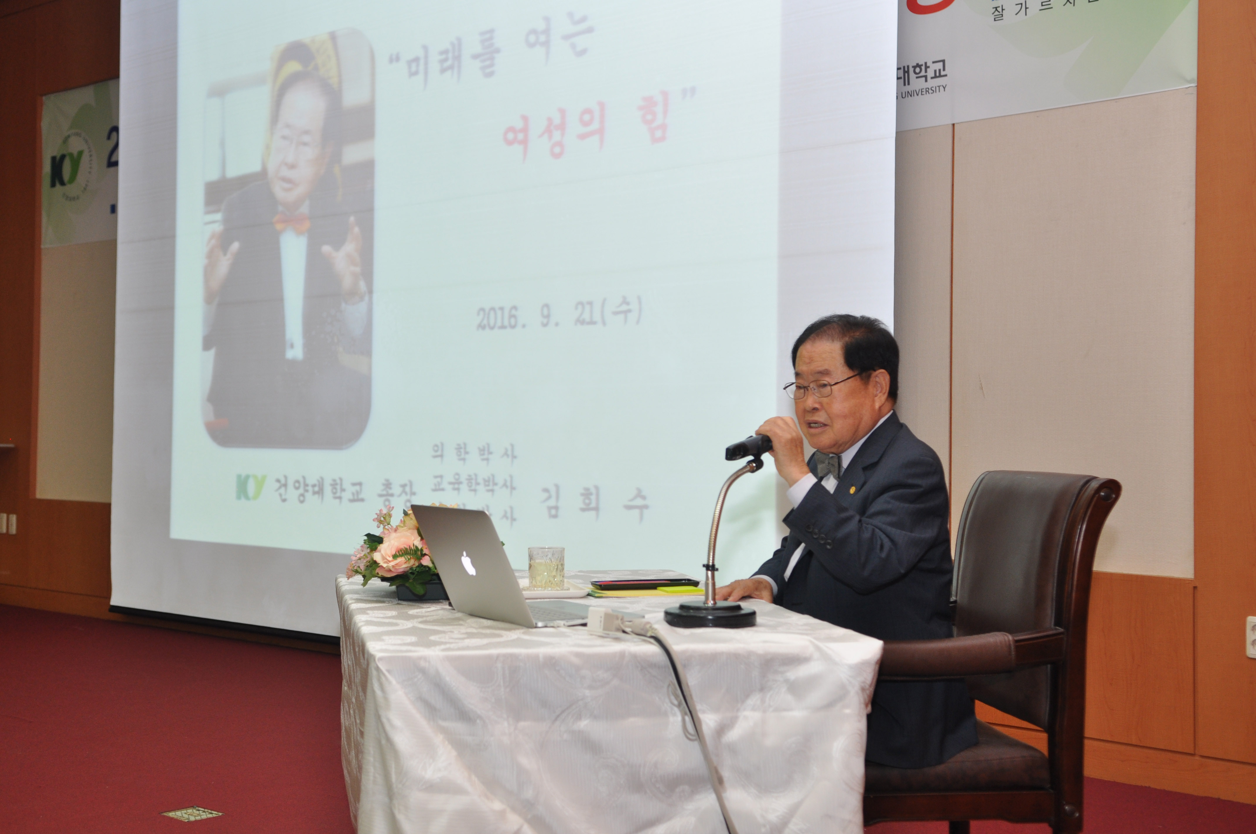 첫 특강자인 김희수 건양대 총장이 특강을 하고 있는 모습.jpg