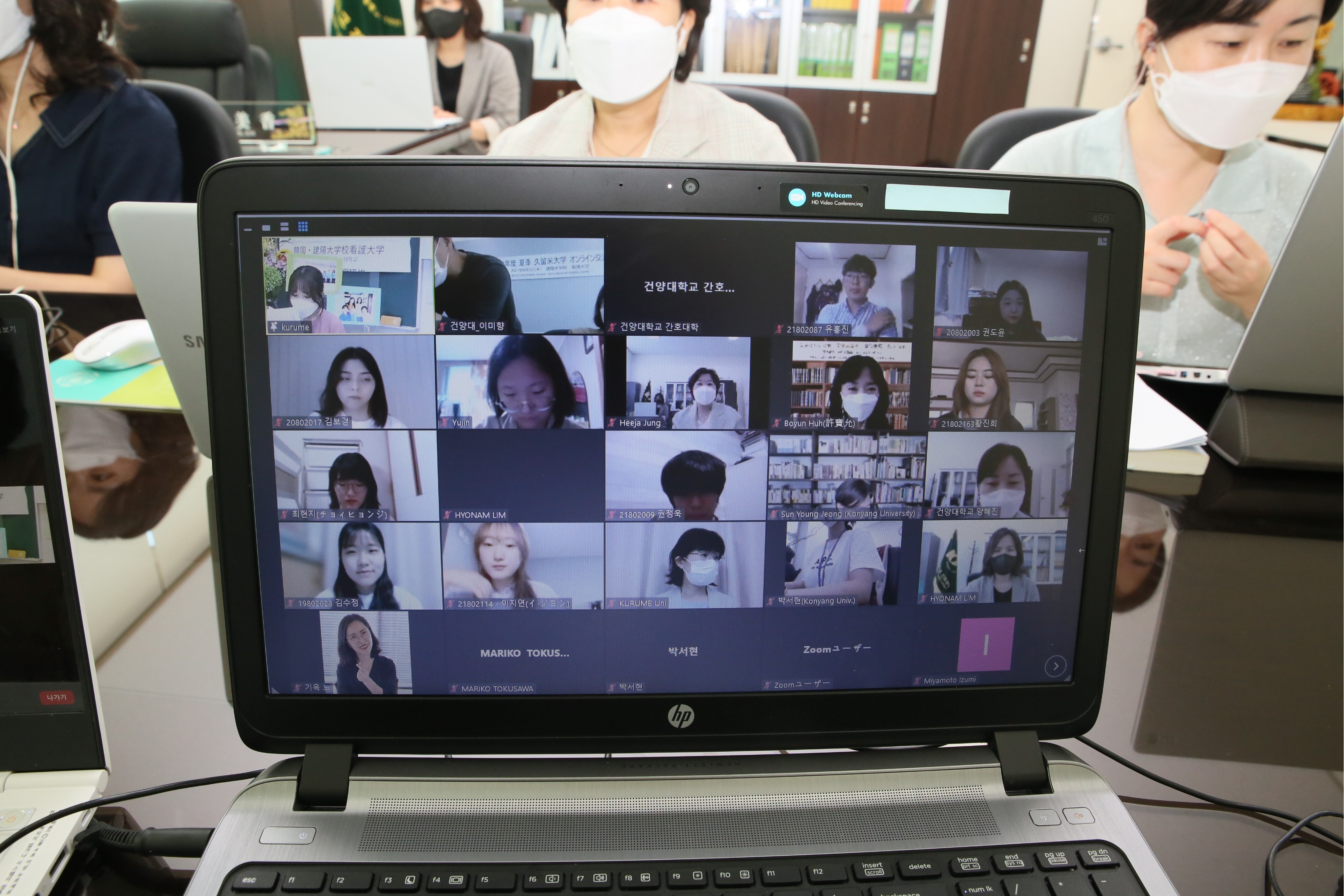모니터 화면을 통해 처음 만난 양국 학생들은 어색할만도 했지만 자국의 코로나 현황을 상대방 언어로 훌륭하게 발표했고 이후 이어진 질문시간에도 코로나 시대에서 병원실습은 어떻게 하는지, 아르바이트를 구하려면 어떻게 하는지 등 대학생 공통의 관심사에 대해 다양하게 이야기를 나누는 모습을 보였다.