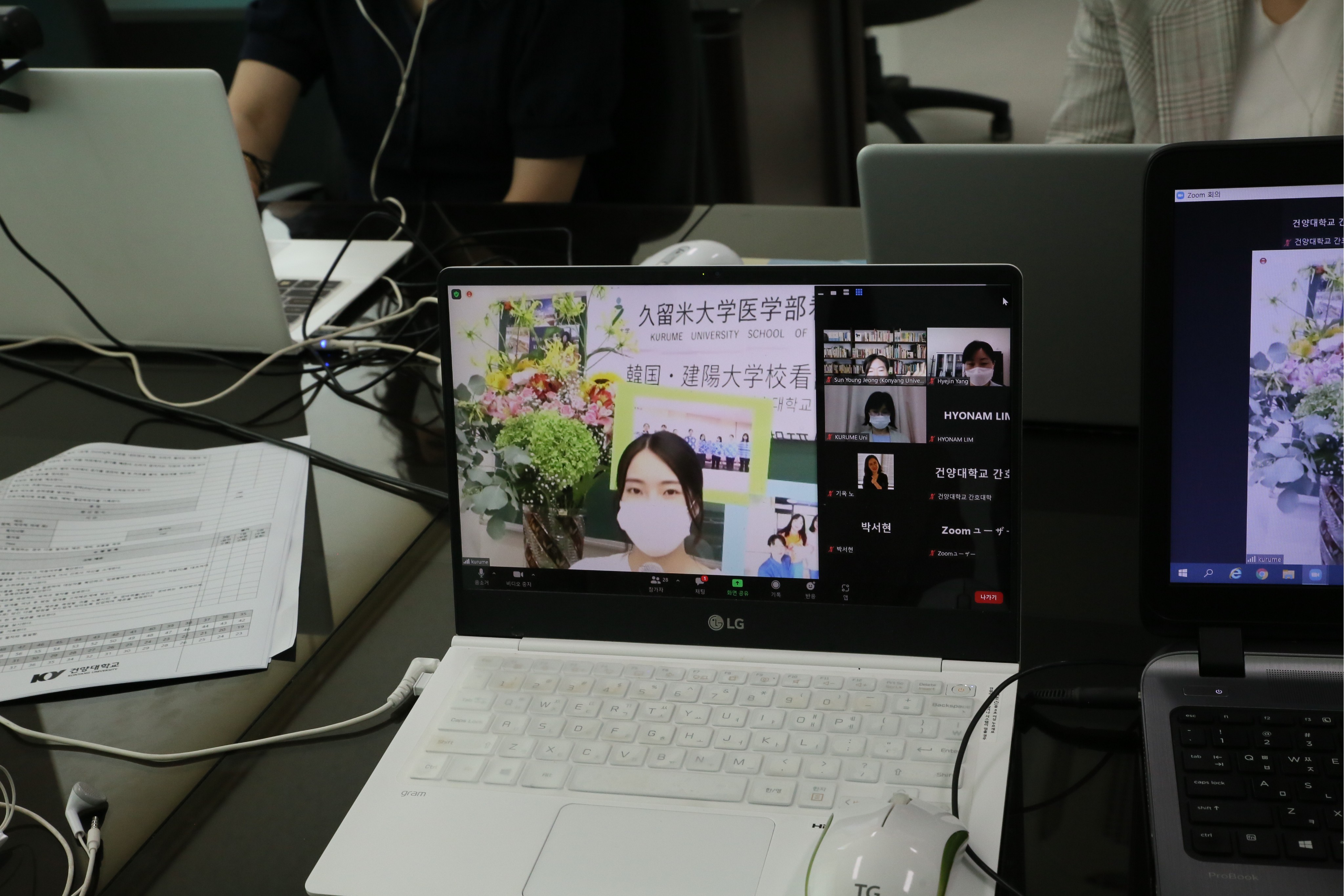 사진 2. 5일 건양대와 일본 쿠루메대학 학생과 교수들이 줌(ZOOM)을 통해 서로의 발표를 듣고 토론에 참여하는 모습