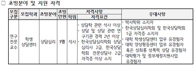 우리대학 2023. 1. 1.부 연구전문교수 초빙에 관심을 가져 주시어 감사합니다. 임용지원 및 심사에 따른 안내사항을 아래와 같이 안내드리오니 참고하여 주시기 바랍니다.