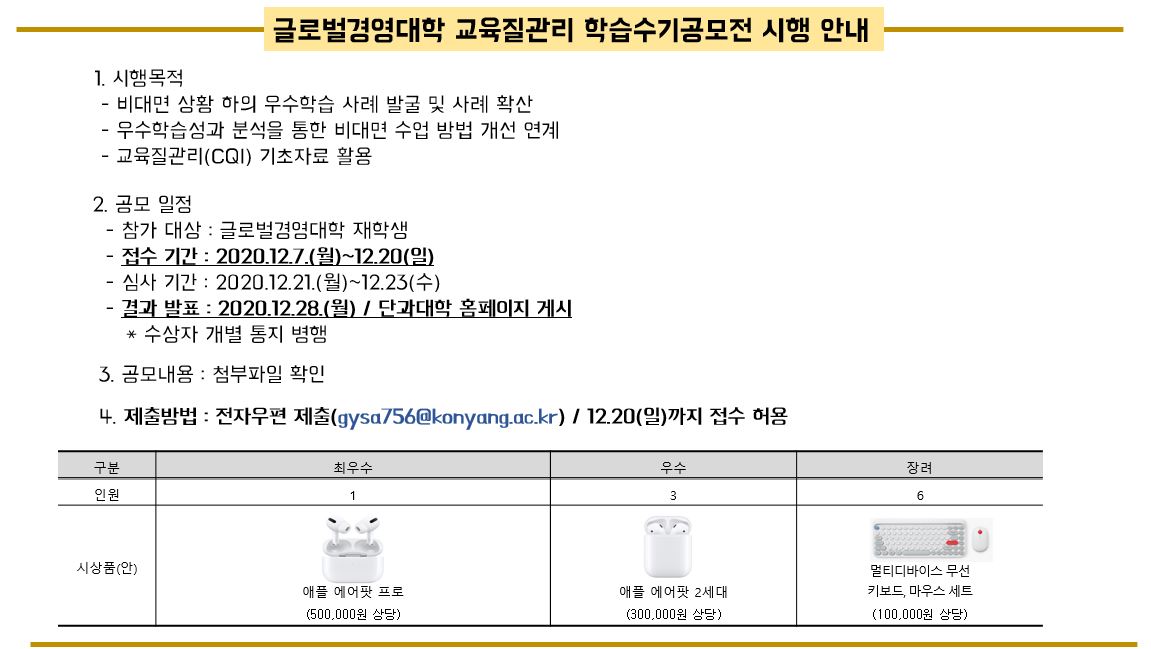 | 제목 | 글로벌경영대학 교육질관리 학습수기 공모전 시행 안내 | ||||