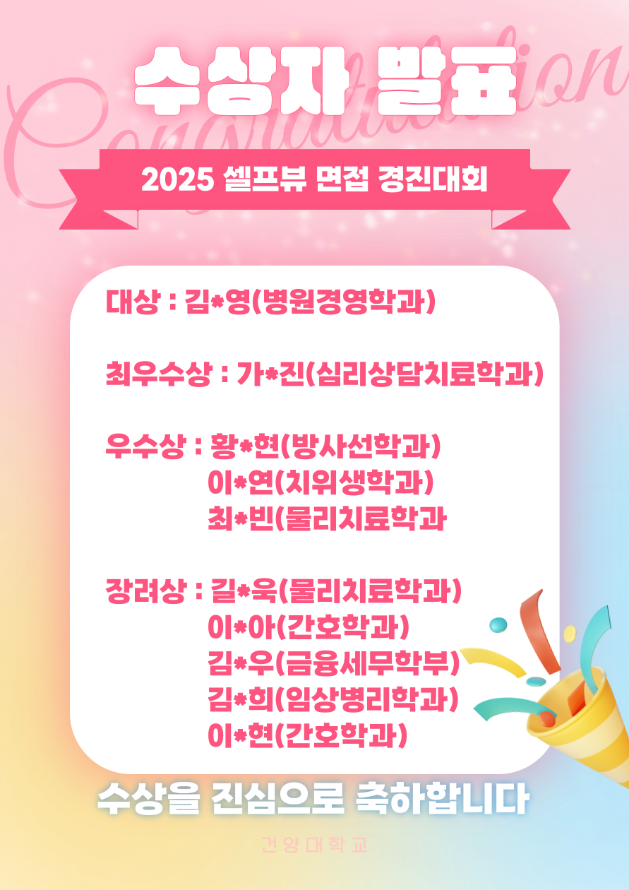 2025학년도 셀프뷰 면접 경진대회 수상자 발표 글의 상세내용